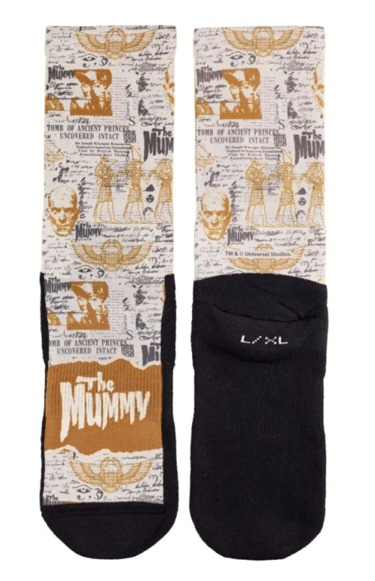 Thou shall take its place and then… RISE again! Pay tribute to the classic Universal Monsters with these comfy knit socks featuring the iconic Imhotep, The Mummy.