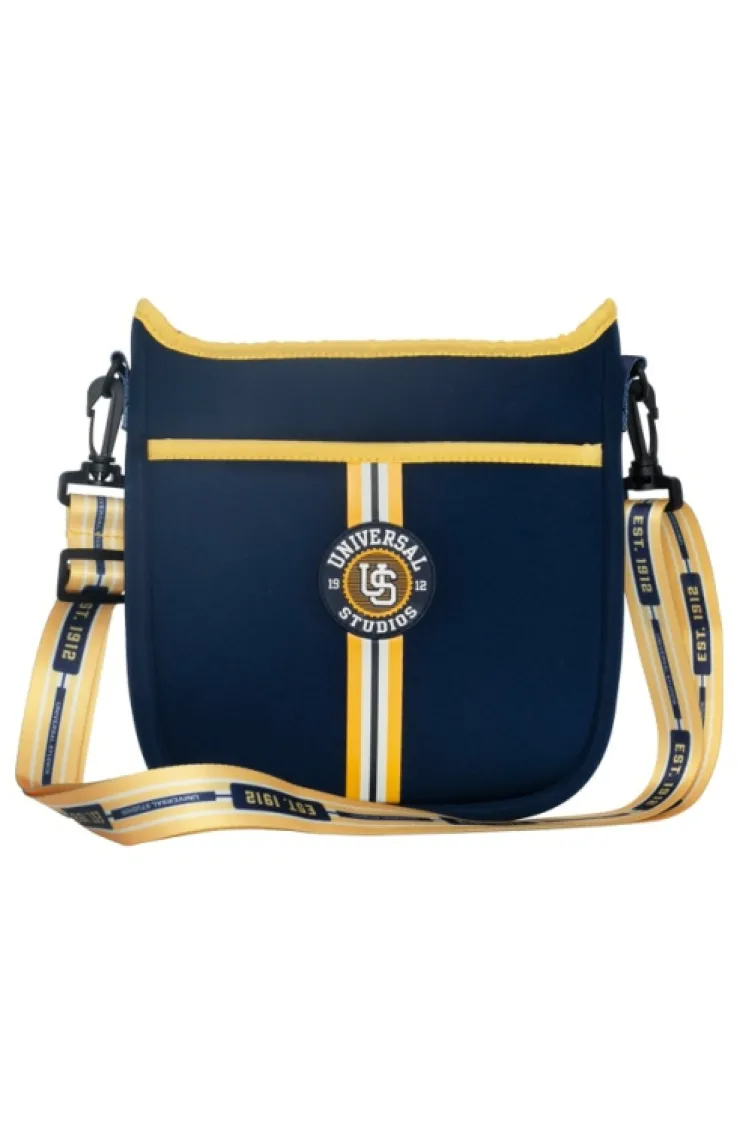Show your collegiate spirit with this Universal Studios 1912 cross-body bag. The bag features a Universal Studios silicon patch, zipper closure on top to keep items secure and an adjustable cross-body strap.