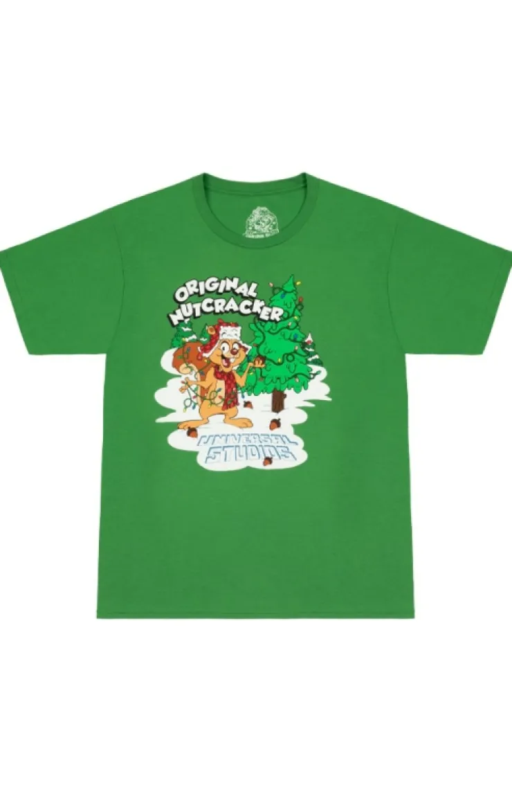 Universal Studios adult t-shirt in the color green featuring Earl the Squirrel with "Original Nutcracker" acro…