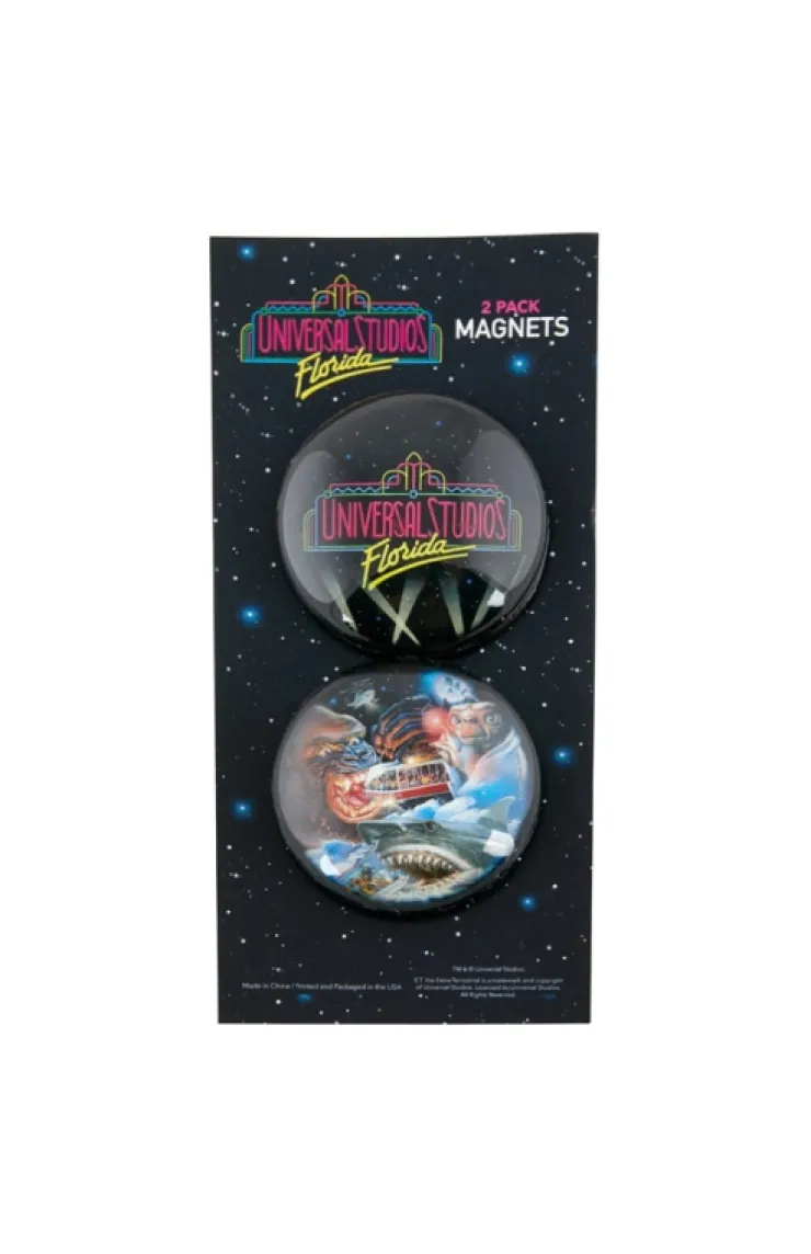 Relive your first trip to Universal Studios as we throw back to our roots, commemorating the classics with this collectible Universal Studios Florida bubble magnet 2-pack. Design features our retro marquee logo on one, and illustrations that pay homage to some of the iconic classics that started it all – E.T., King Kong, and Jaws on the other.